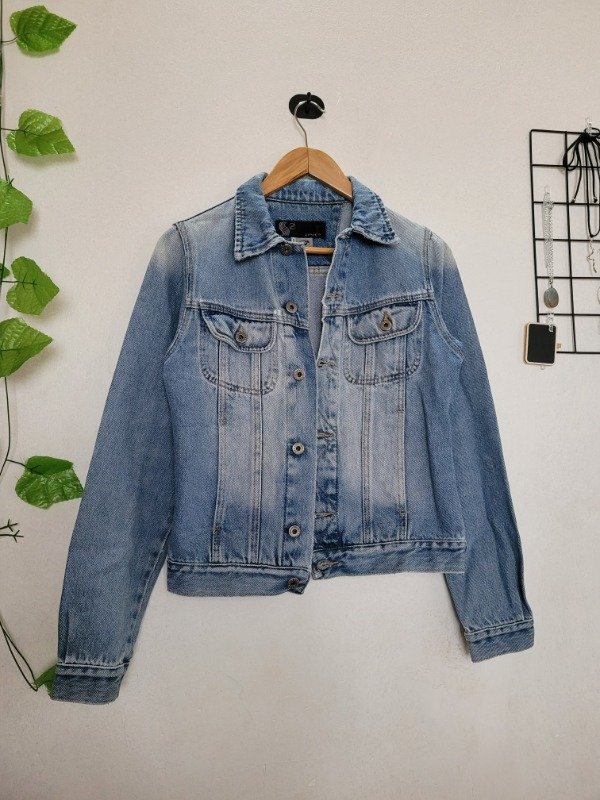 Campera de jean estilo 2000s, fit ajustado y muy combinable.