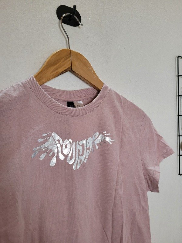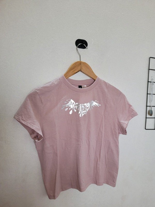 🩶 Remera H&M color rosa viejo con estampa tipo holográfica, hermosa calidad.